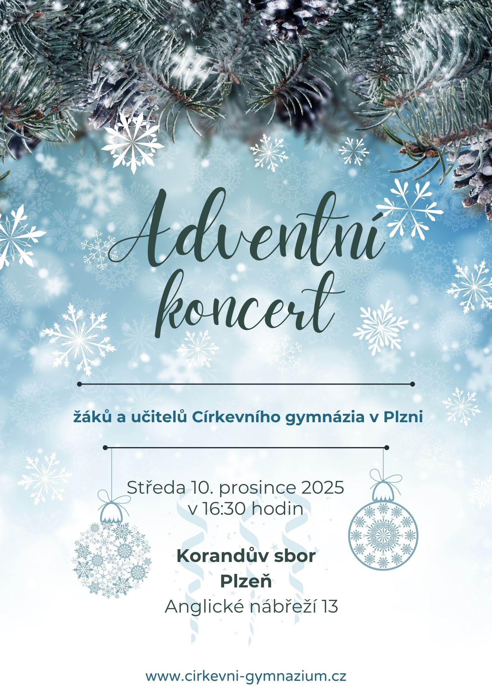 Adventní koncert Církevního gymnázia se uskutečnil ve středu 10. 12. 2025 od 16.30 v Korandově sboru ČCE.