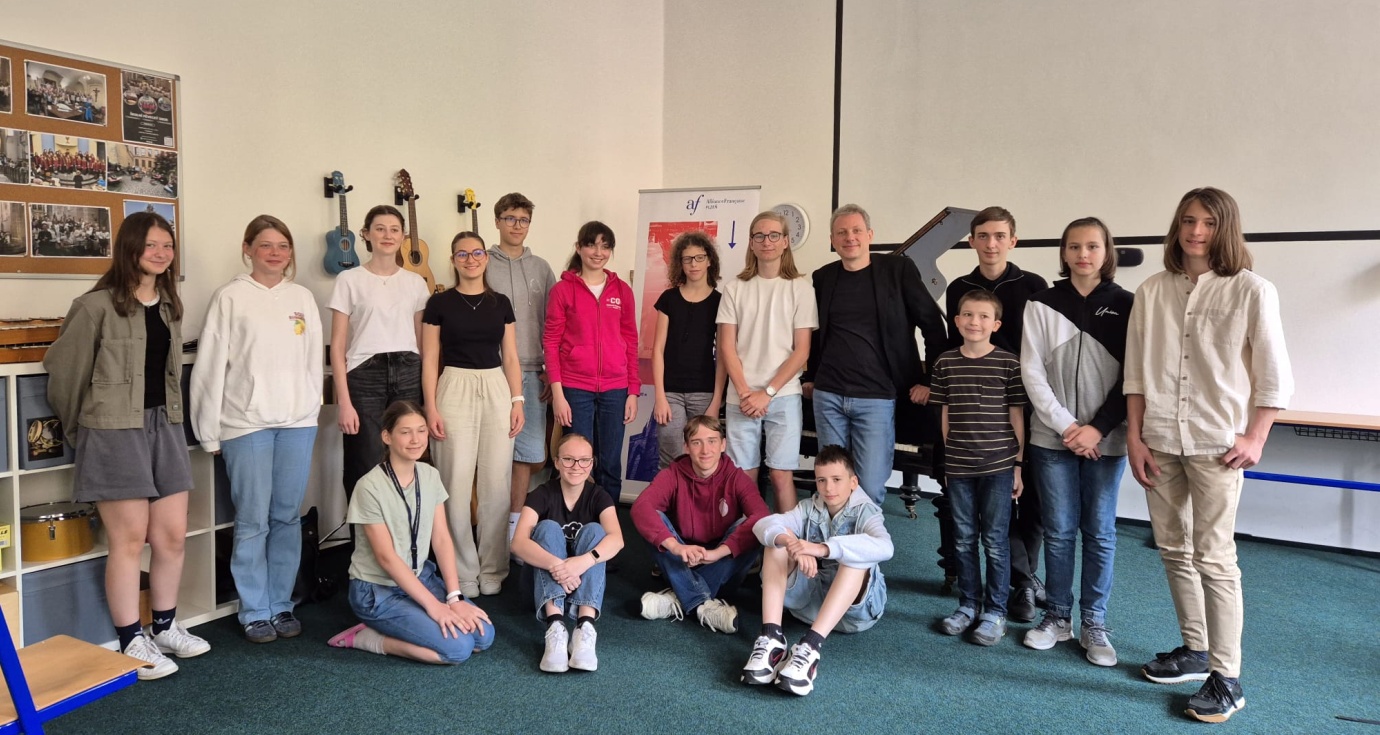 Dne 5. 6. 2025 jsme v rámci festivalu Bonjour Plzeň přivítali na naší škole vynikajícího francouzského klavíristu Maxima Zecchiniho. Během intenzivního dopoledního semináře se věnoval nejenom problematice interpretace skladeb různých hudebních období a stylů, ale představil i méně známá díla komponovaná pouze pro levou ruku.