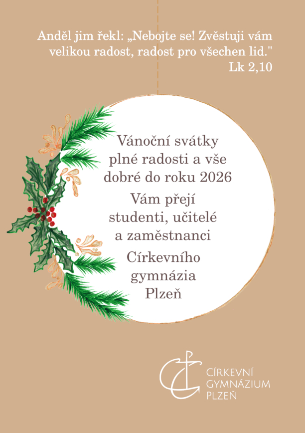 Vánoční svátky plné radosti a vše dobré do roku 2026 Vám přejí studenti, učitelé a zaměstnanci Církevního gymnázia Plzeň.